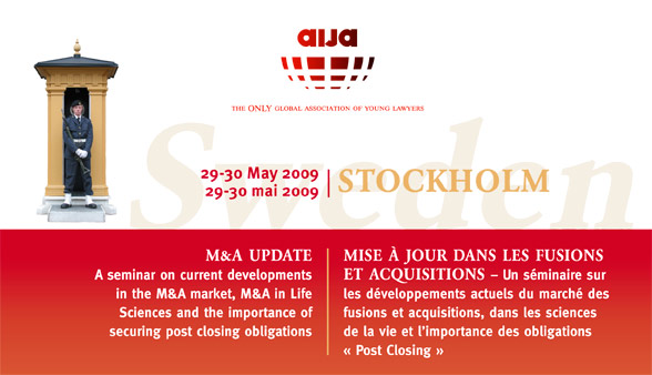 The AIJA Corporate Acquisition and Joint Ventures Commission is pleased to invite you to a seminar on recent developments in M&A.This two-day seminar and its particularly strong line-up of speakers will offer an unique opportunity for lawyers interested and specialising in M&A to update and improve their expertise and to further develop relationships with colleagues from other firms and countries. The organising committee has put together a varied seminar programme which is intended to explore the subject of M&A in greater depth. The first section of the programme will address recent developments in M&A with a particular focus on the current market situation and include a comparative analysis between the common law and civil law approaches to reducing risk in SPA drafting. The second part of the programme will focus on a rapidly growing and challenging business area, Life Sciences, and examine in what ways M&A is different in this industry. Finally, in the light of the current financial crisis, the programme will investigate the importance of securing the seller’s post closing obligations and the various options that may exist in this regard. The program features speakers from highly respected business law firms, such as Allen & Overy, Reed Smith, Lindahl, Vinge and Wiersholm  as well as prominent speakers from the industry, such as Merck KGaA and investment banks. The social part of the program will include a cocktail reception on Thursday, 28 May for those arriving early. On Friday evening, we will discover the islands and skerries of Stockholm by boat and enjoy dinner in the beautiful Stockholm archipelago. A post seminar dinner will also be arranged on Saturday, 30 May, for those staying until Sunday. A visit to Stockholm offers an opportunity to see one of the world’s most beautiful capitals. Built on fourteen islands around one of Europe’s largest and best-preserved mediaeval city centres, the Swedish capital is superbly positioned, with stunning and extremely varied scenery in every direction.